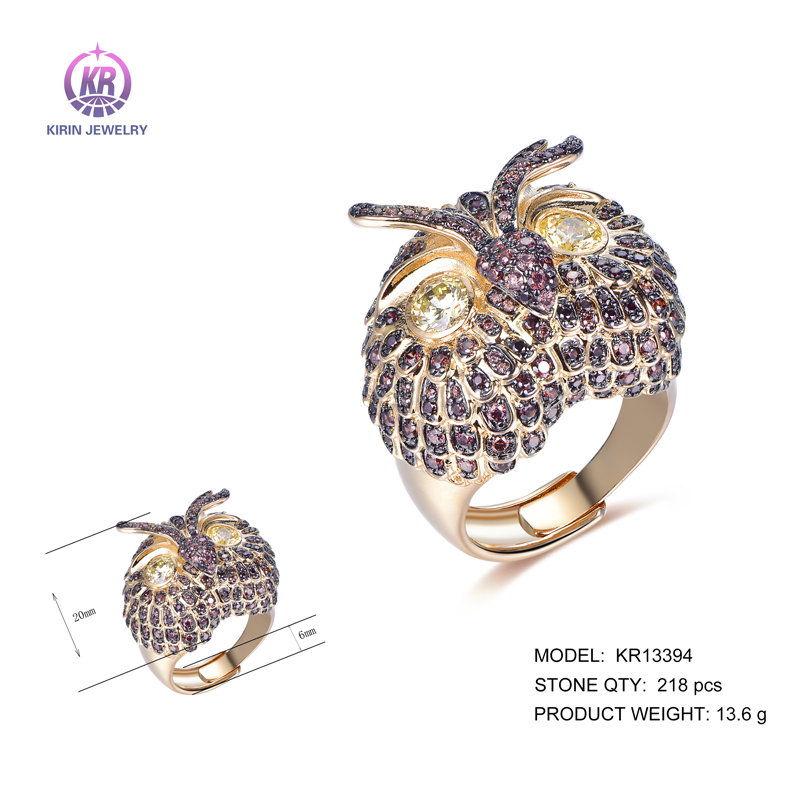 925 silver owl rings with rhodium plating color CZ KR13394