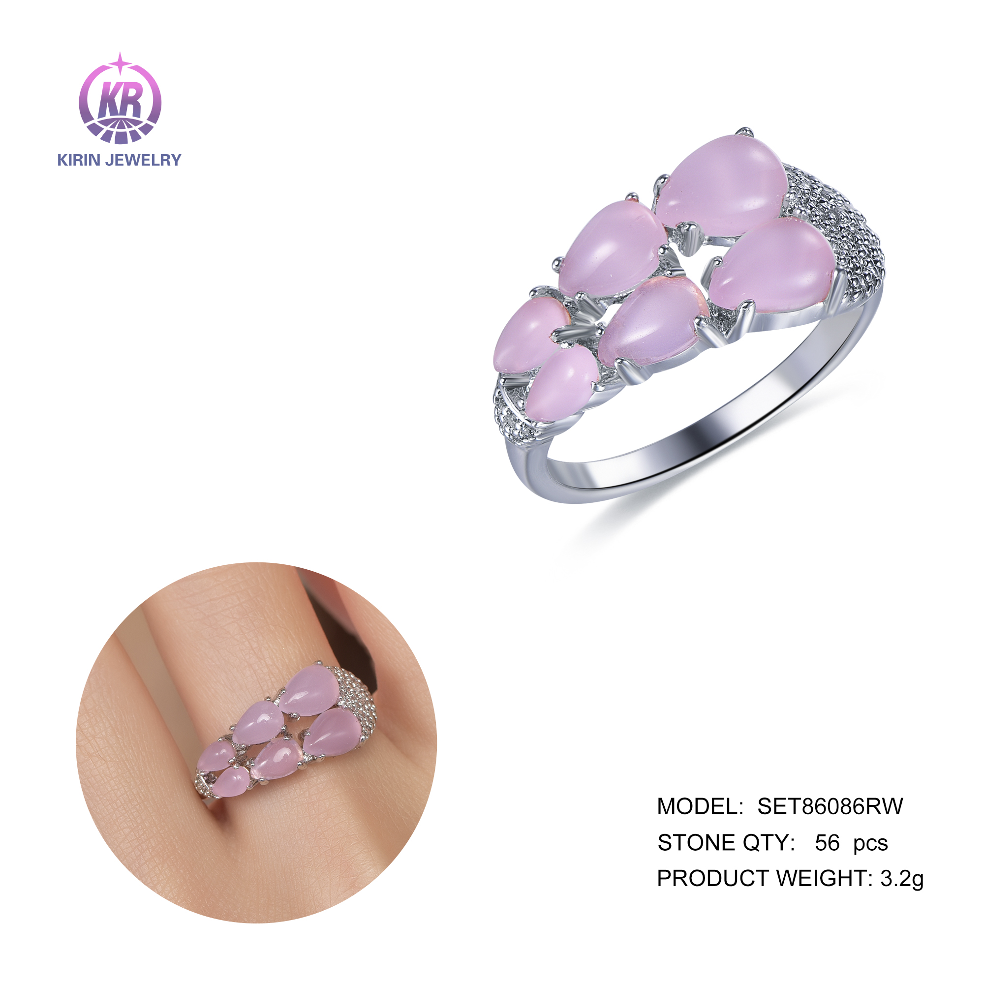 925 silver ring with rhodium plating pink CZ 86086-1