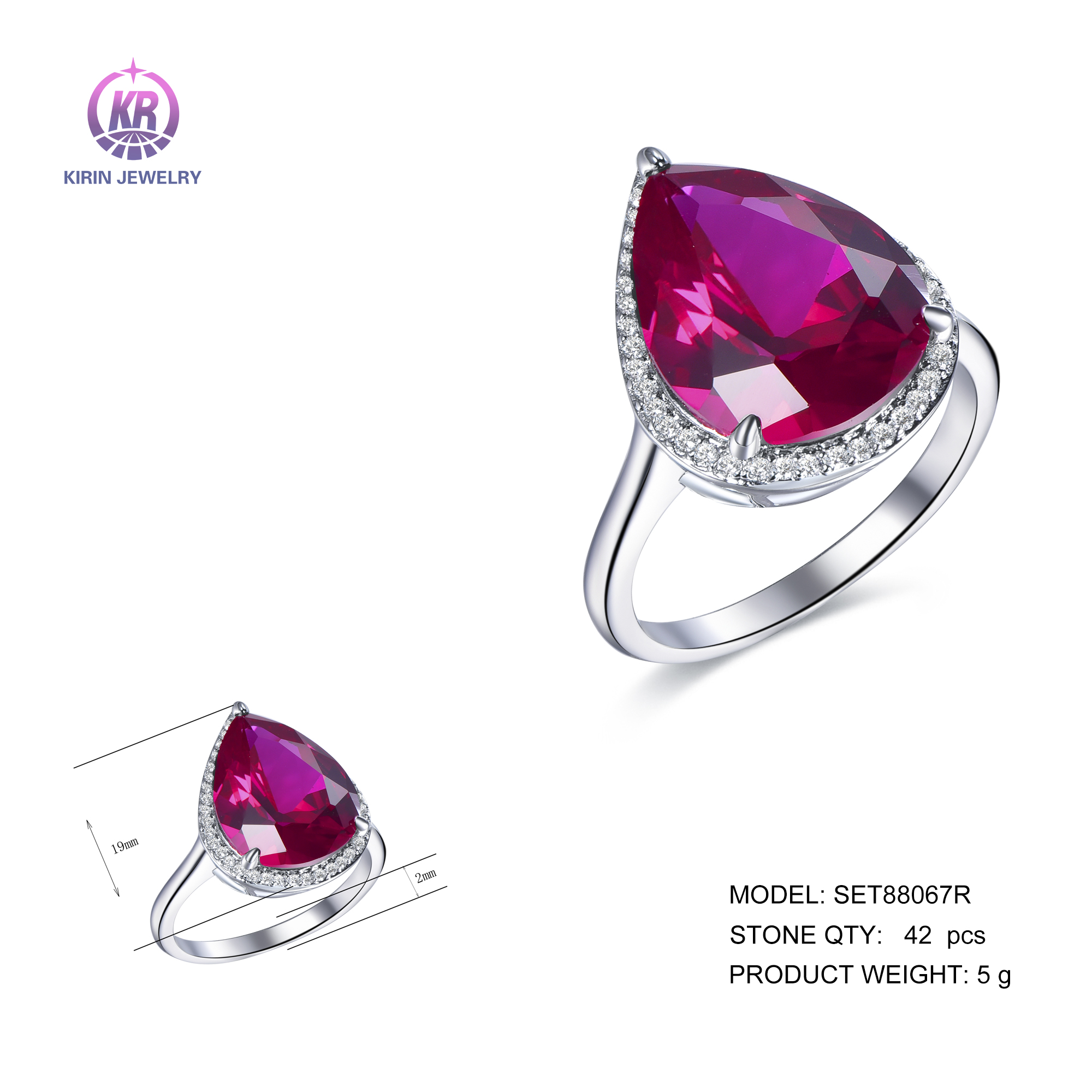 925 silver rings with rhodium plating ruby CZ SET88067R