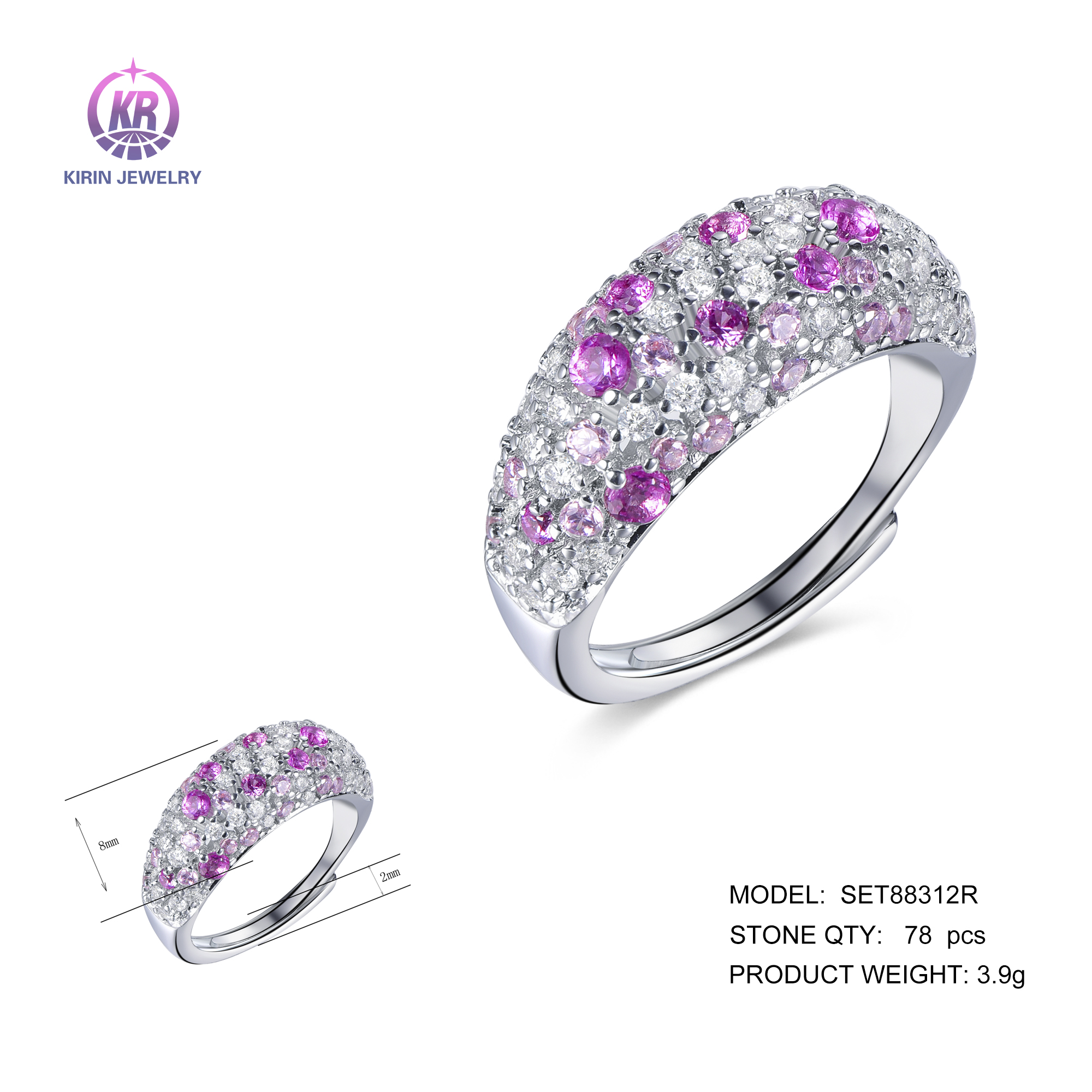 925 silver rings with rhodium plating CZ SET88312R